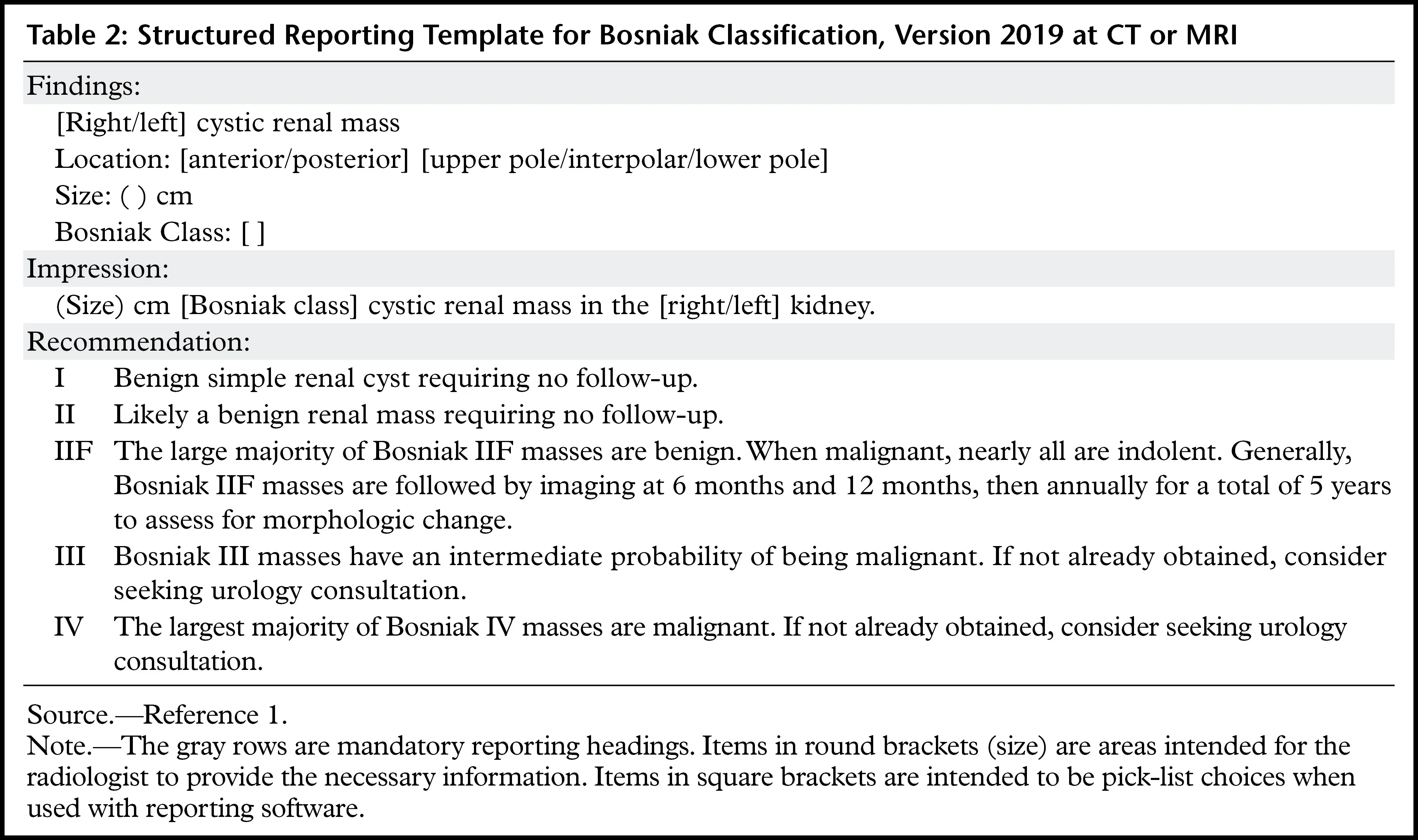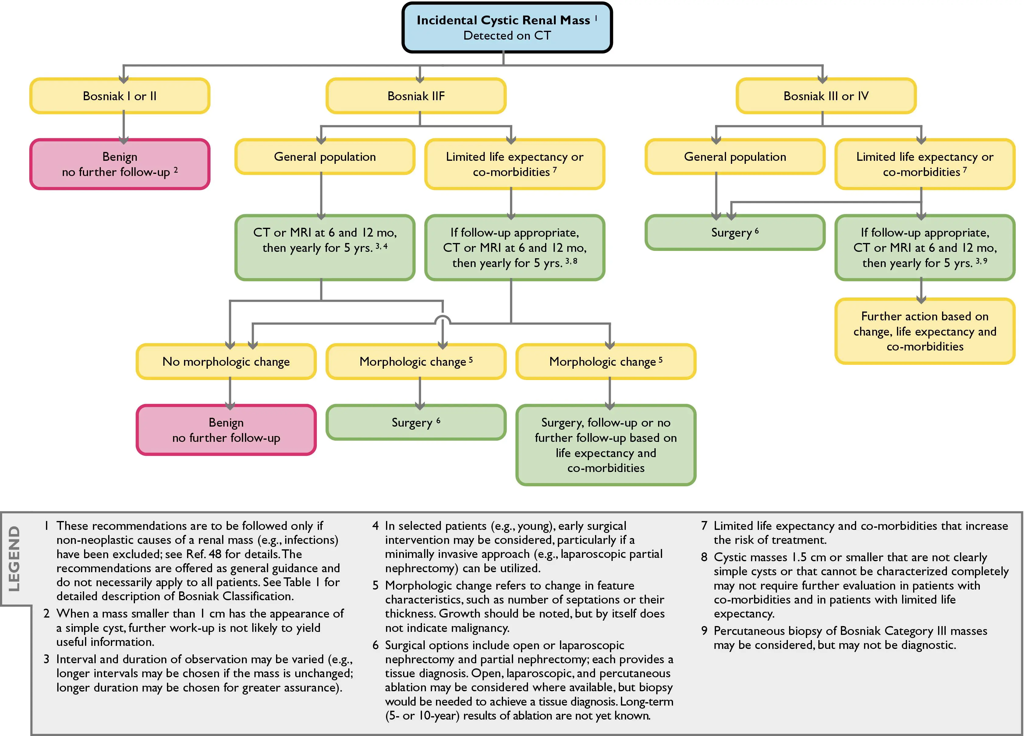 Schieda N, Davenport MS, Krishna S, Edney EA, Pedrosa I, Hindman N, Baroni RH, Curci NE, Shinagare A, Silverman SG. Bosniak Classification of Cystic Renal Masses, Version 2019: A Pictorial Guide to Clinical Use. Radiographics. 2021 May-Jun;41(3):814-828. doi: 10.1148/rg.2021200160. Epub 2021 Apr 16. Erratum in: Radiographics. 2022 Jan-Feb;42(1):E33. doi: 10.1148/rg.219016. PMID: 33861647. ↩ ↩2