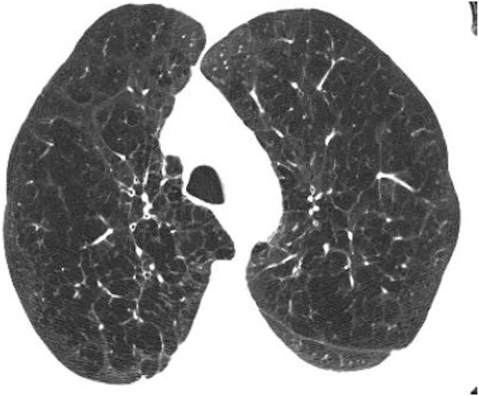 | Pneumothorax, Pneumomediastinum | Lymphadenopathy | Cystic lung disease |