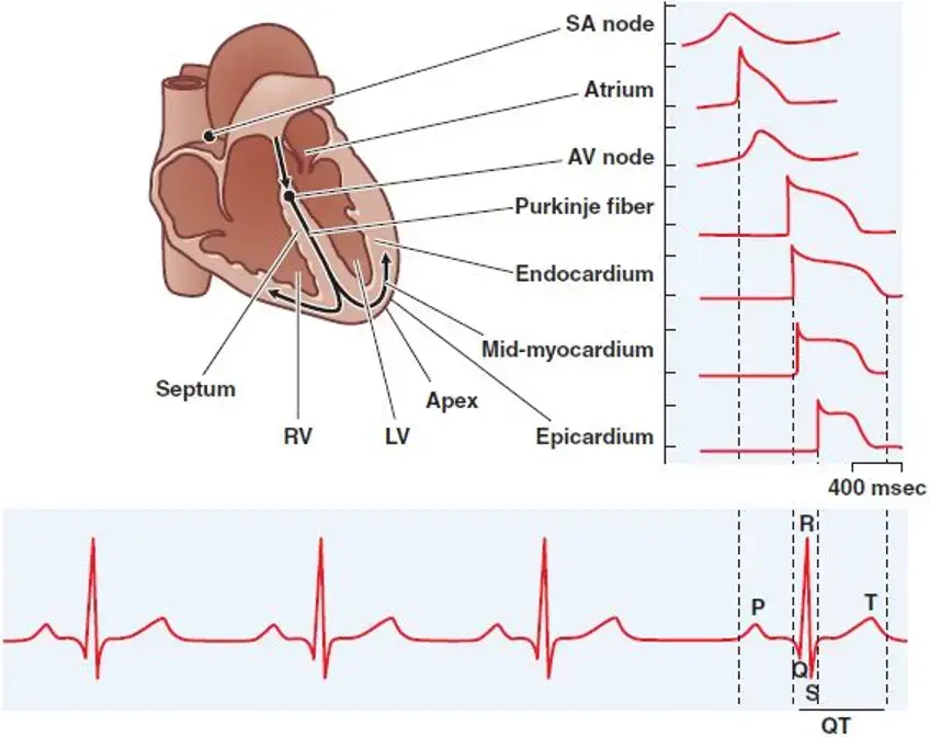 - Phase 3: late repolarization, IKr and IKs channels