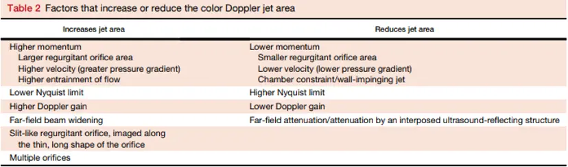 Table 2 Factors that increase or reduce the color Doppler jet area