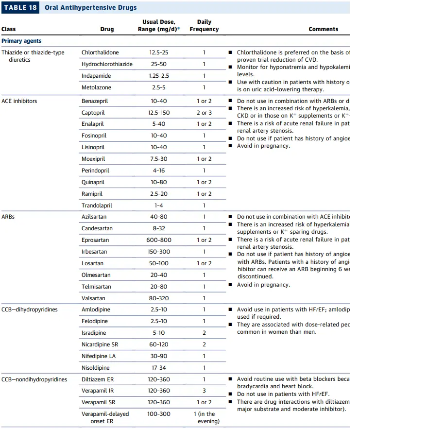 - AHA/ACC 2017: thiazide diuretics, CCBs, and ARBs (IA recommendation)