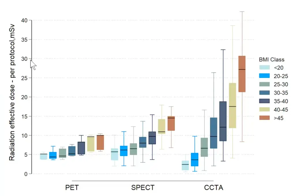 - Current radiation dosimetry is low for CCTA, with effective doses for most patients in the 3 to 5 mSv range1
