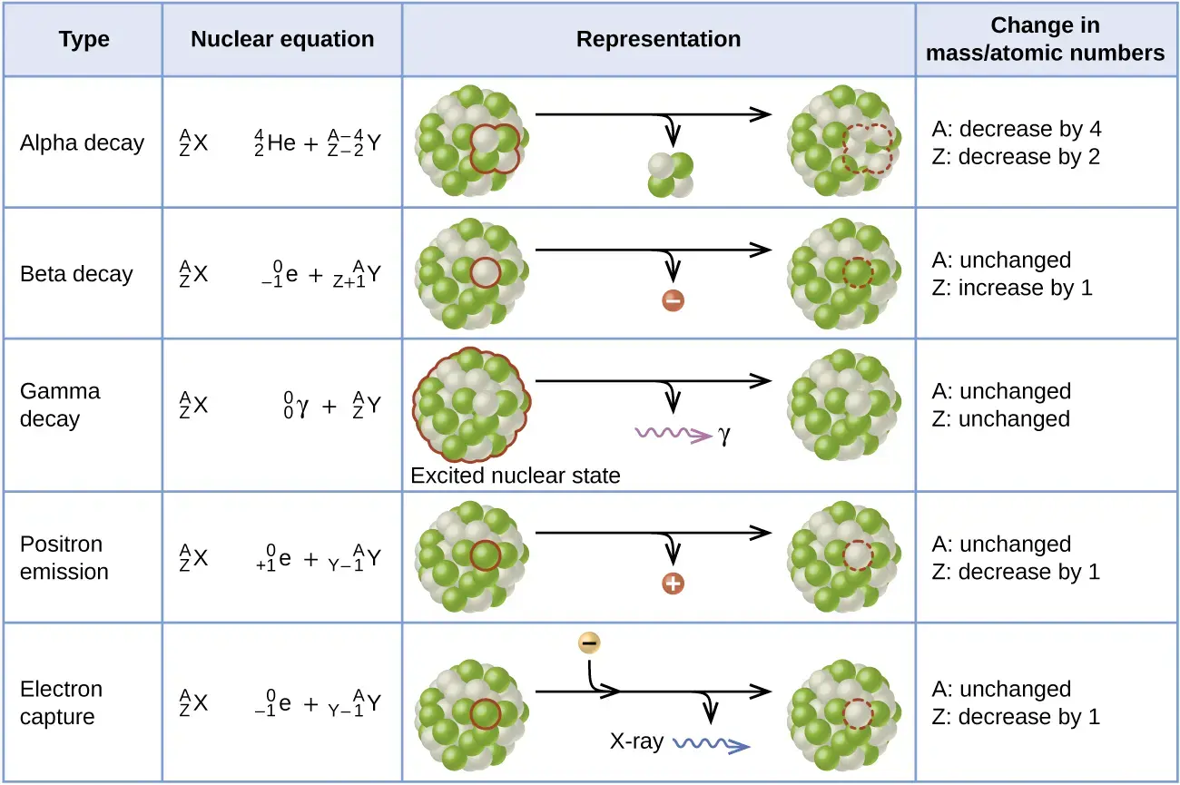 Radioactivity occurs when we have an instability in the nuclear structure of an atom. There’s several different ways in which this can happen:
