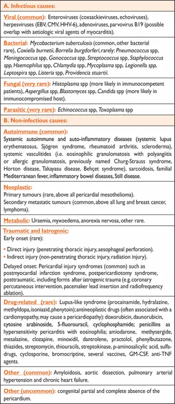 - Pericarditis (acute, subacute, chronic and recurrent)