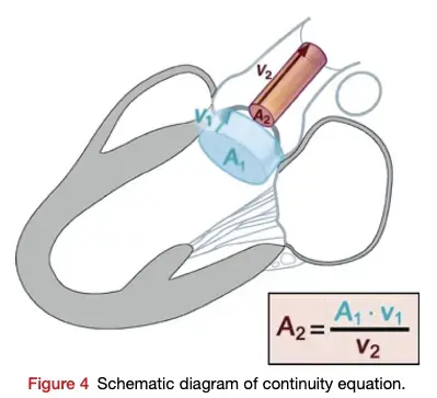 When the valve is tight, the velocity of the blood going through the valve must increase to keep the flow through the LVOT and the aortic valve constant. Recall, , so the velocity has to ↑ when the area is ↓ to maintain the flow rate. Analogy: Think of crimping the water hose while you’re watering your plants.