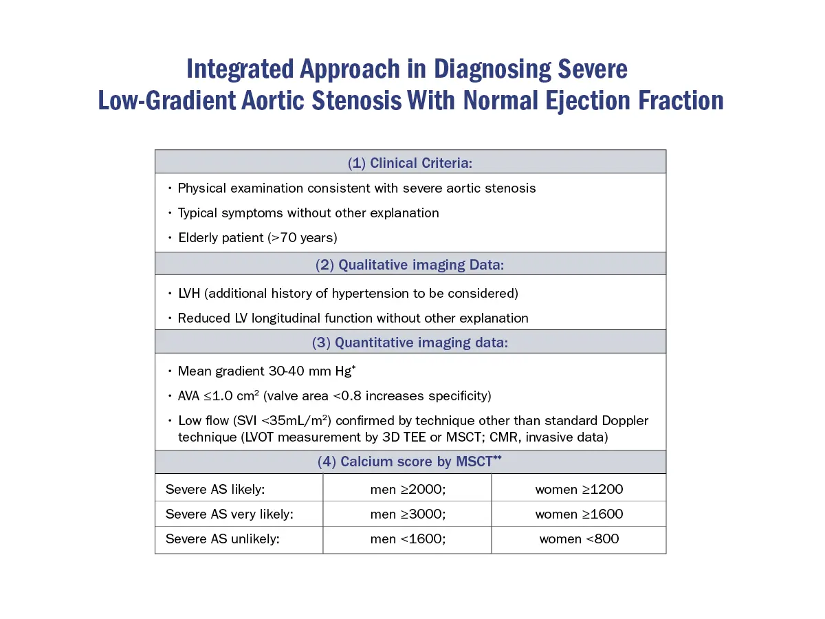 - Stage D2, i.e. LFLG AS with reduced LVEF (EF < 50%)